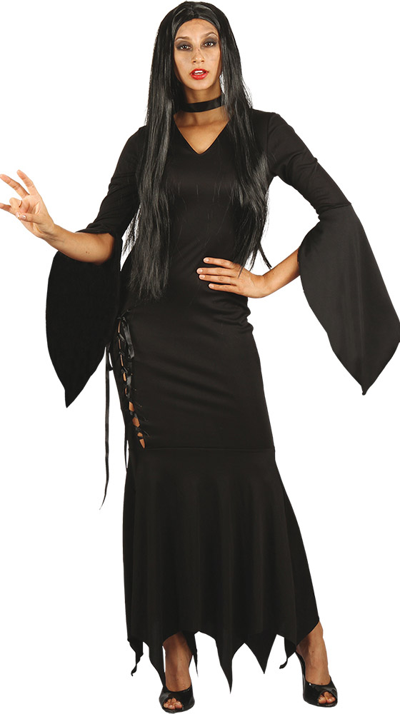 Denne sorte Halloween kjole fra Festogide.dk er det ideelle valg for dem. Der ønsker, at skille sig ud til enhver fest. Kjolen forener elegance med et mystisk præg. Perfekt til både Halloween og temafester.