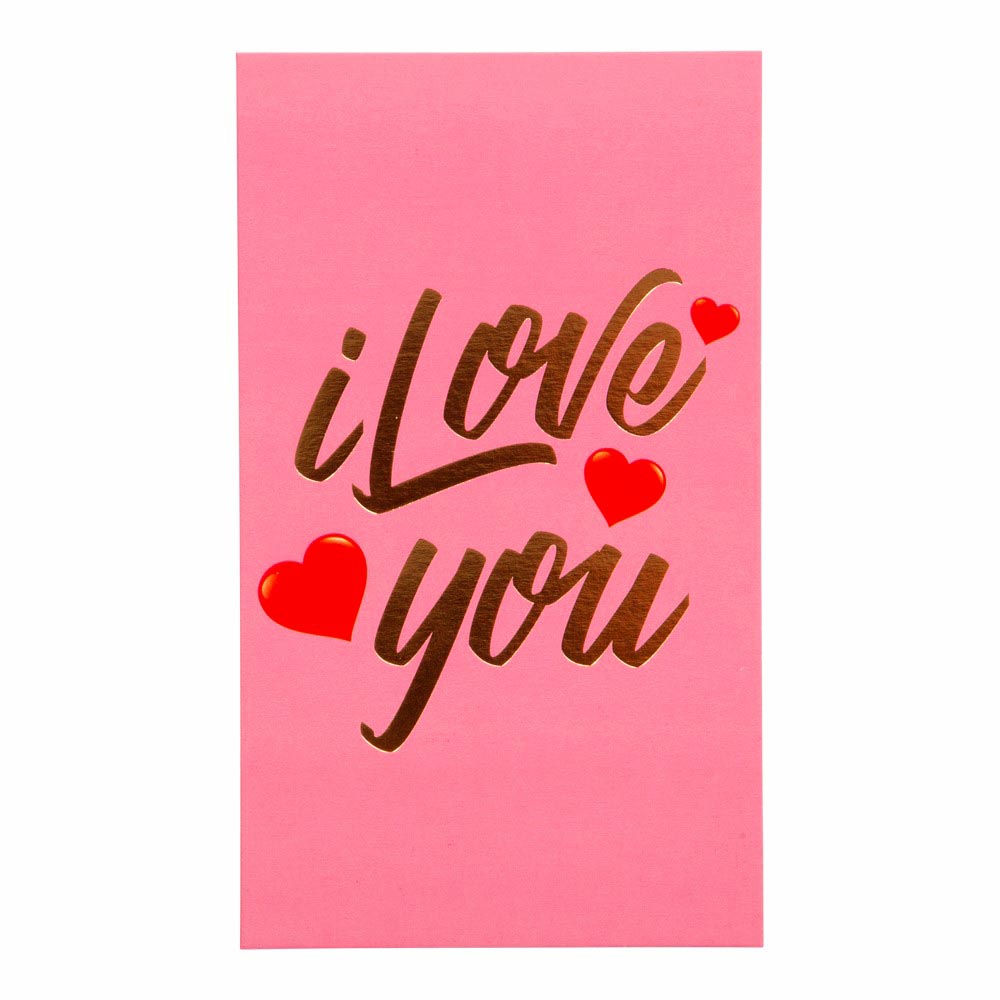 Dette Valentinskort er den ideelle måde, at udtrykke dine følelser på. Det elegante lyserøde design med røde hjerter og guldtryk skaber en romantisk atmosfære.